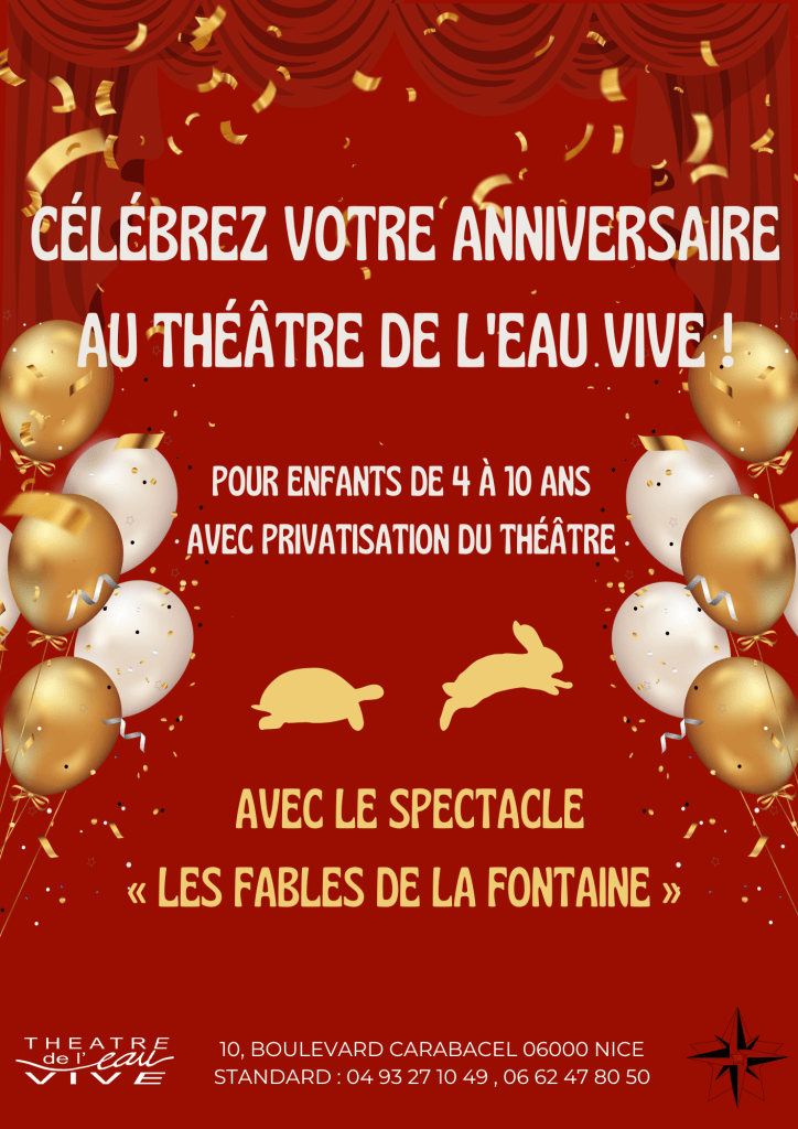 - Fête d’anniversaire pour enfants de 4 à 10 ans avec Privatisation du Théâtre de l’Eau Vive à Nice